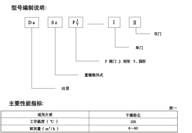 該系列閥門的閥板在物料重力作用下自動(dòng)開啟,物料下落后,配重杠桿系統(tǒng)使閥板自動(dòng)復(fù)位,防止野風(fēng)吹人,從而完成物料輸送。